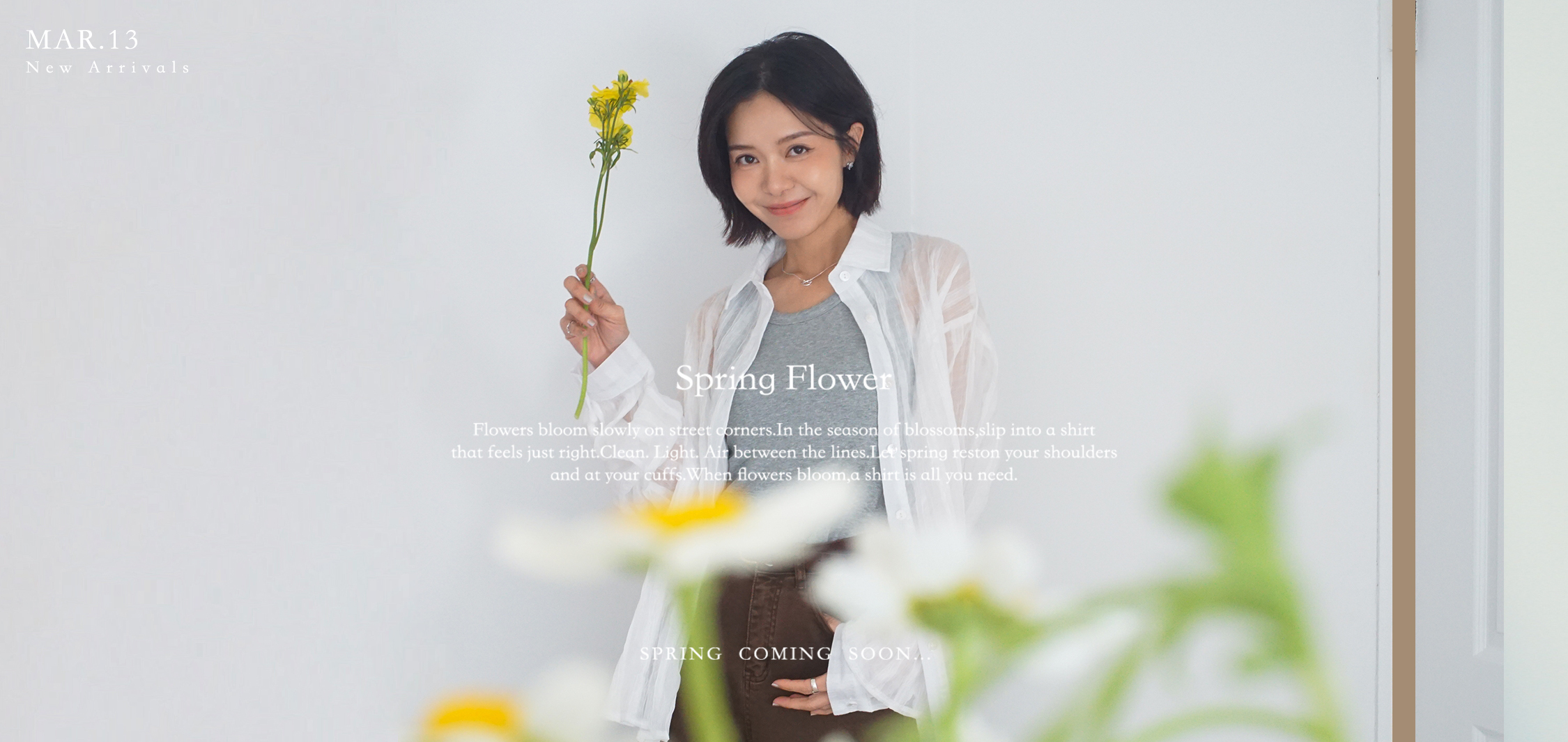 Flowers bloom slowly on street corners.In the season of blossoms,slip into a shirt that feels just right.Clean.