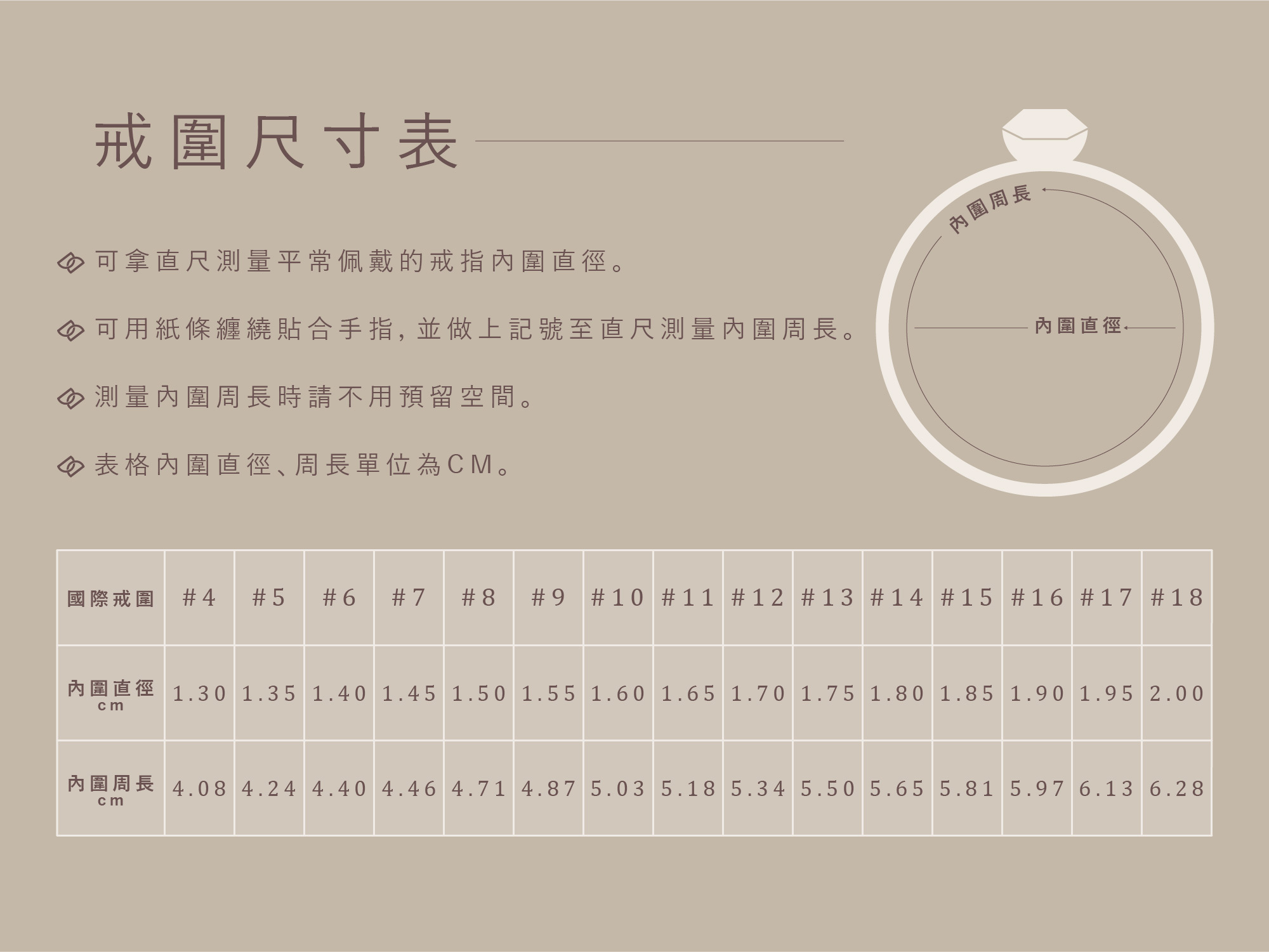 戒指規格為國際戒圍